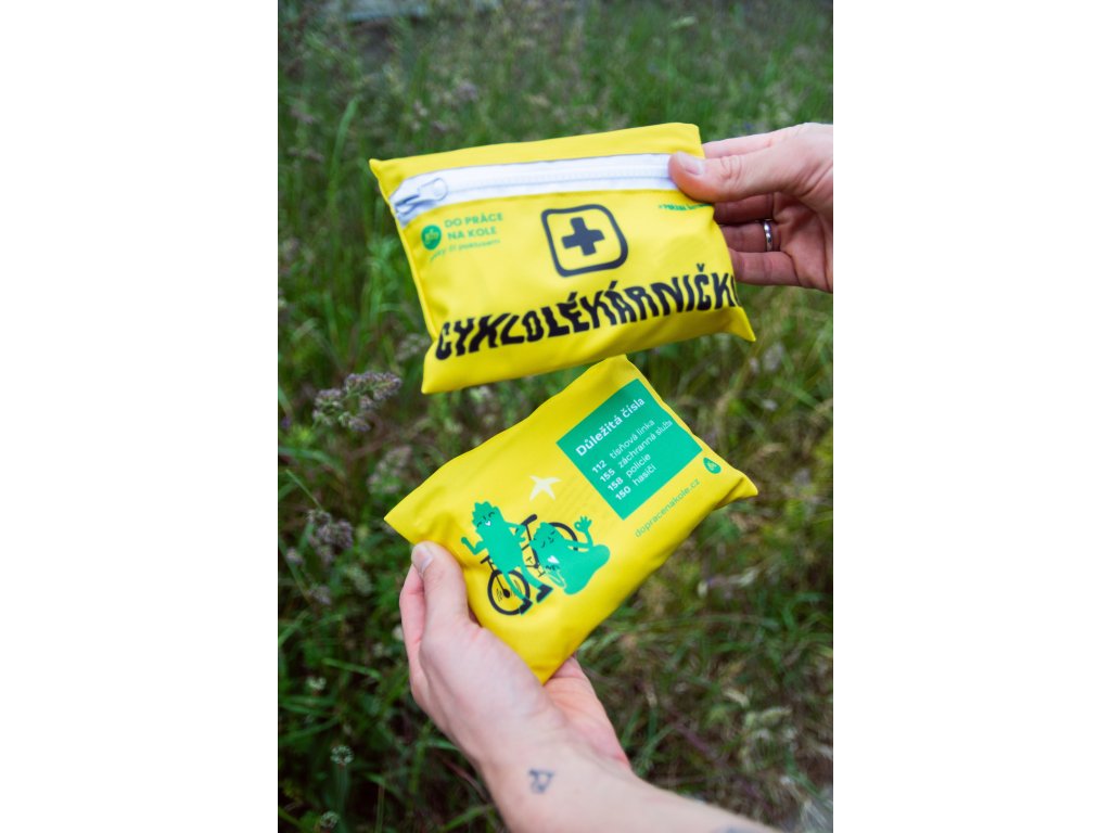 Jenže štěstí přeje připraveným a na kole se čas od času může nějaká ta nehoda stát. Tehdy se hodí mít Cyklolékárničku Do práce na kole 2025 ve stylové taštičce, za jejímž vizuálem stojí ilustrátorka Markéta Černá. V lékárničce najdete vše, co můžete potřebovat v nepříjemné situaci. Tak šťastnou a udržitelnou cestu!